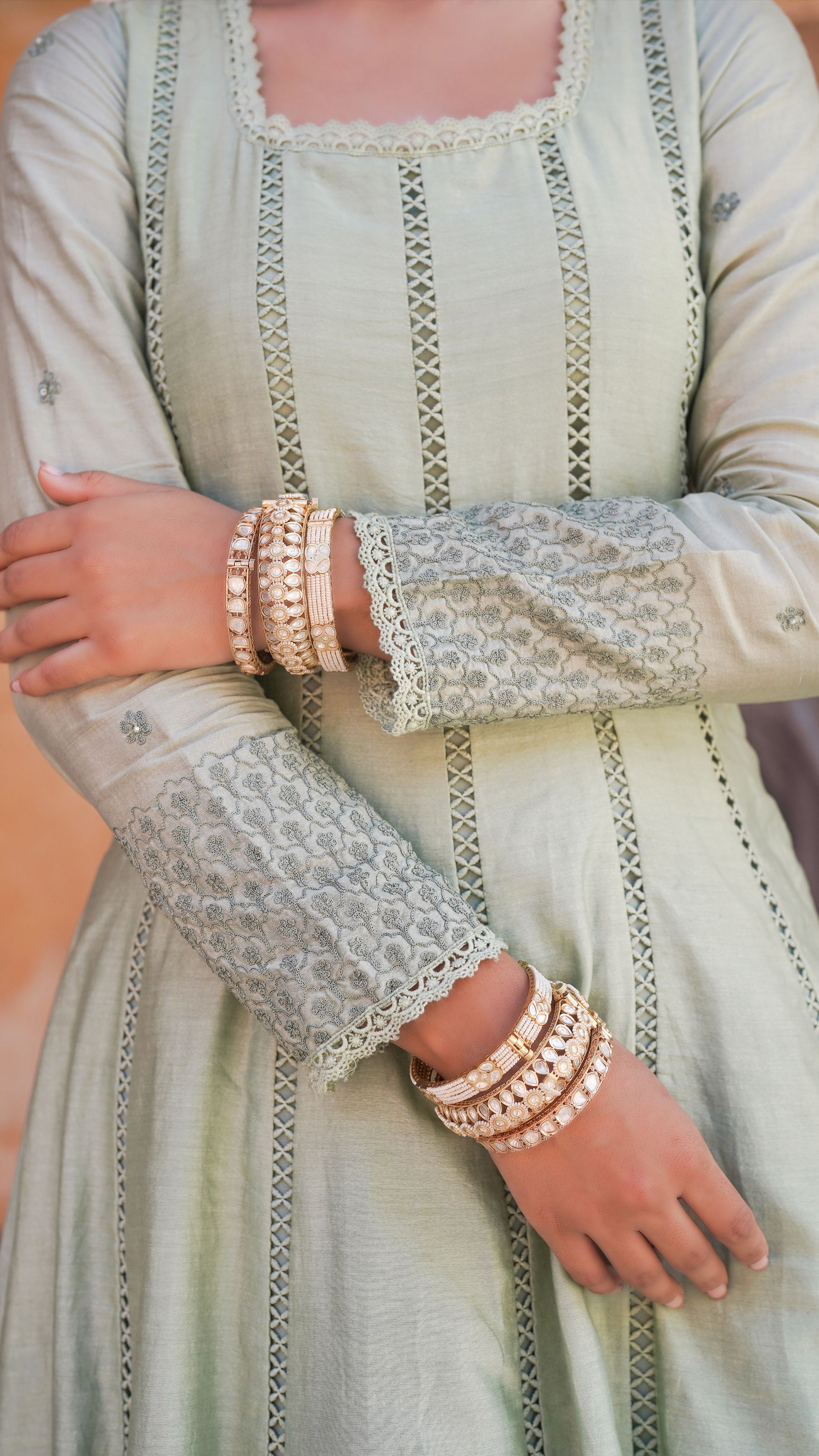 Green Chanderi Silk Hand Embroidered Anarkali Set